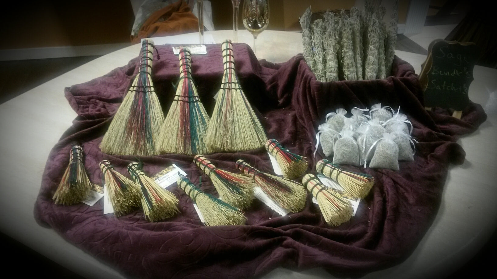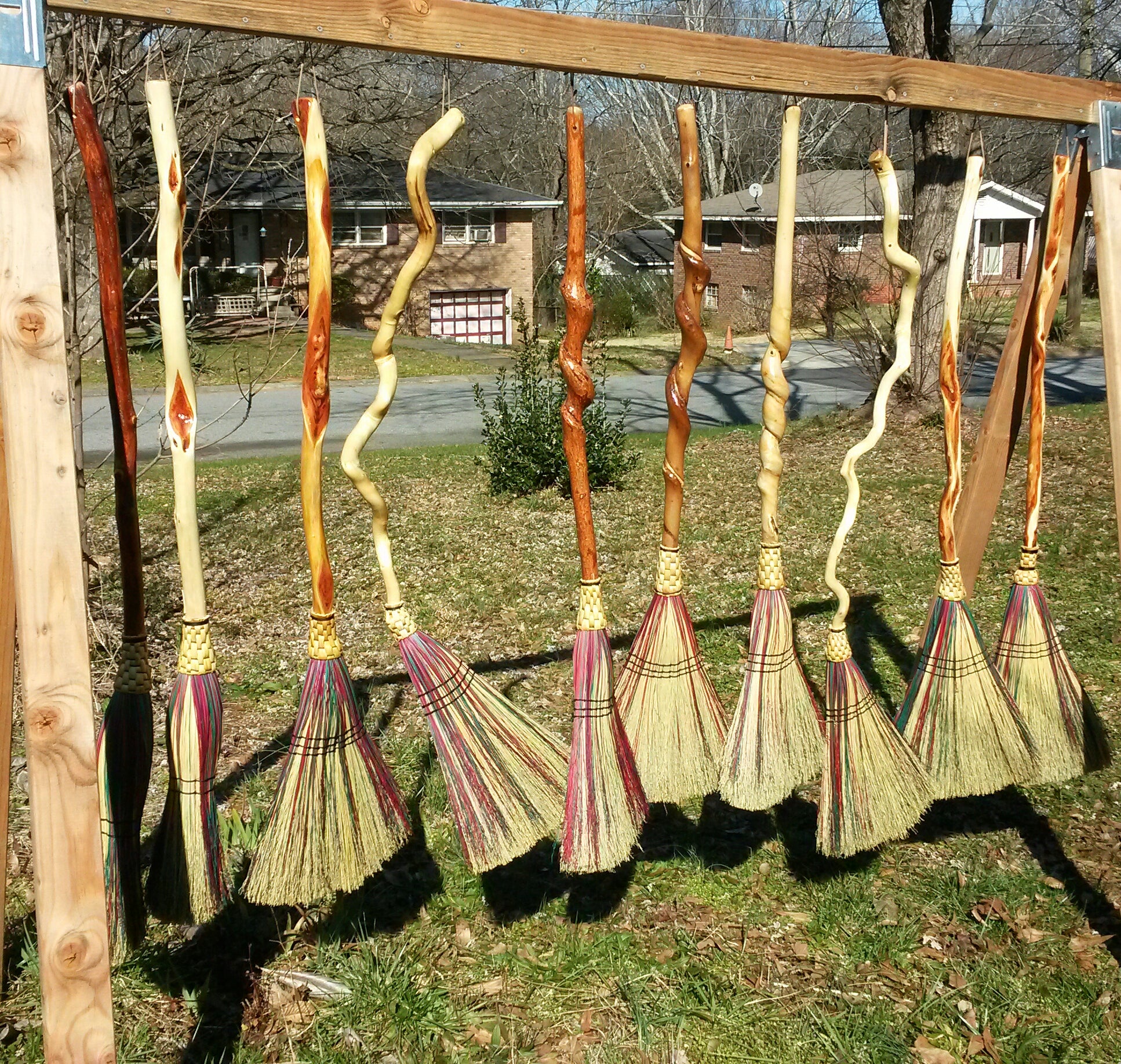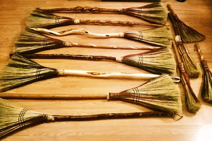 Each broom is crafted by hand using natural fibers and